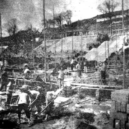 自己动手,自力更生!”19497月,中原大学南迁武汉后,自主建校的方案敲定了下来。在经费严重不足而又急切需要的情况下,全校师生员工掀起了义务建校的劳动竞赛高潮。全校师生分三组筹备,12月份,中原大学破土动工。