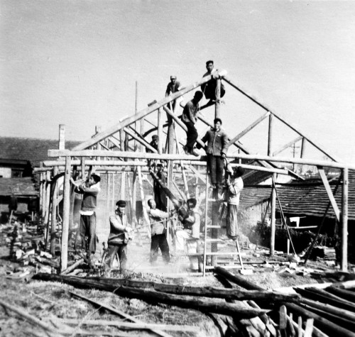 师生在校农厂建房