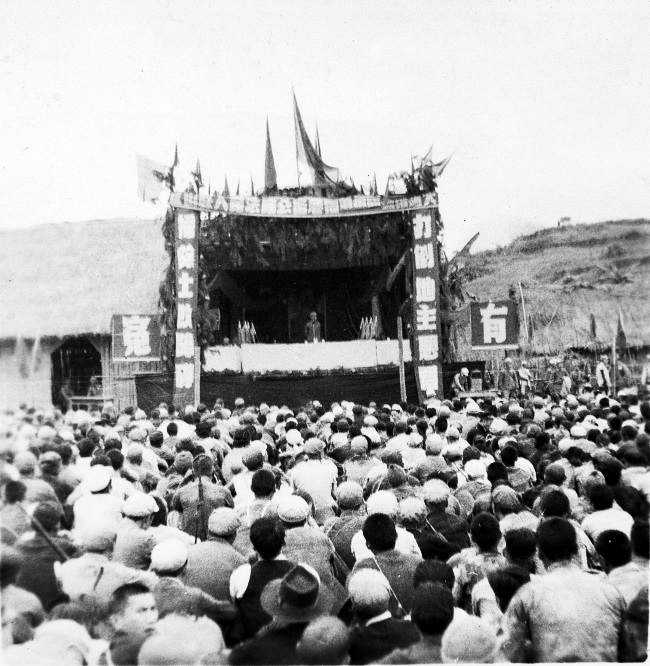 中原大学土改工作团召开群众大会