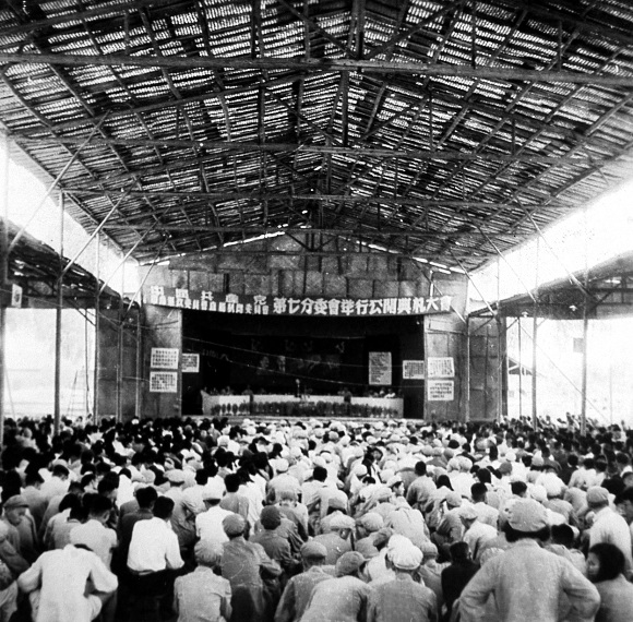 中原大学召开欢送土改工作团大会