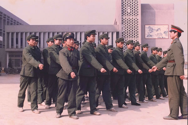 在行政楼前广场上军训