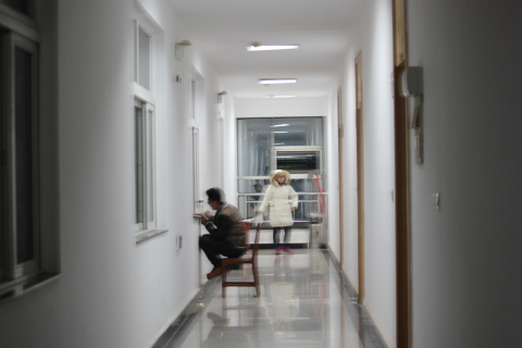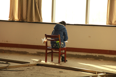 来自法学院的邱丽与焦松,他们共同的复习基地是等待重建的图书馆四楼原电子阅览室(一)。拍摄之时,他们都正在大声地背诵着复习资料。焦松表示,他们都比较投入,所以不会觉得对方的声音是对自己的干扰。