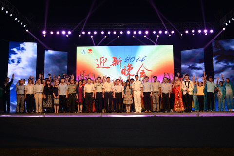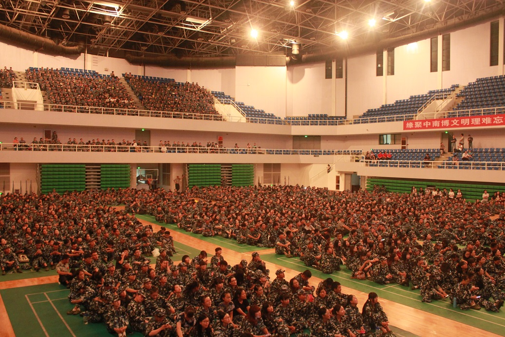 新闻网讯(通讯员 畅雅莉 张艳芸 学生记者 李凤琦 蒙晓华 孙丽华 龙靖莹 马玲 赵娟 李琳 杨帆 摄影 徐志持)“承首义精神、筑青春梦想、书改革新篇、创中南辉煌”,9月25日晚,我校2014级迎新生文艺晚会在首义校区大运场举行,本次晚会也首次通过现场同步直播的方式呈现给南湖校区的新生。我校军训师副师长、海军工程大学教官周皓,校长杨灿明,校党委副书记齐文远、王文贵,副校长陈小君,首义校区党工委书记、管委会主任周景明等分别莅临首义校区和南湖校区的晚会现场,学校相关职能部门领导、各学院领导老师以及海军工程大学的军训教官等也一同到场观看晚会。