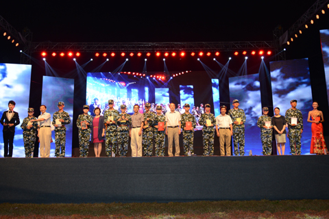 我校师生共同带来的歌曲串烧《我们的时代》选用了深受90后喜爱的电影、音乐等歌曲元素,受到大家的欢迎。circle圈圈人声乐团演绎的阿卡贝拉版《传奇》,用动人的歌声使空旷的大运场顿时安静,所有观众都在用心聆听。军训师副师长周皓的登台引发了全场的高潮,歌曲《望乡》款款深情,台下观众自发的拿起手机随着音乐摇摆,如同繁星点亮了夜空。