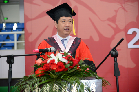杨灿明说,希望今年毕业的同学们,无论今后人生境况如何,都能永远记取和坚守人生的“情”字,倾听来自内心的情感呼唤,做一个无愧于内心、无愧于时代,器宇轩昂、顶天立地的知识精英!为了纪念这一个珍贵的“情”字,学校决定今年向每位毕业生赠送一件学位服,让每位同学都可以穿着属于自己的学位服来接受学位授予。希望学校的这个做法,能给大家的大学生活留下一个永久的纪念和美好的回忆。