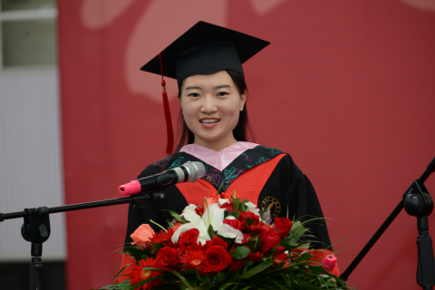 毕业生代表、法学院民商法专业2014届博士研究生赵莹同学,教师代表、金融学院院长宋清华教授,校友代表、我校86级法律系雷建威校友,在校生代表、经济学院2011级经济学专业本科生涂炎同学分别作了发言。