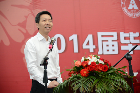 校学位评定委员会主席、校长杨灿明教授向毕业生发表讲话,向学成毕业的2014届全体毕业生表示最热烈的祝贺。(全文另发)他说,今天,我们相聚在艺体中心,为今年毕业的7000余名学子举行毕业典礼,正可谓:“却看师长喜何在,漫卷诗书送鸿鹄”。杨灿明说,别离总是令人感伤的,在这别离的时分,“我要送给今年的毕业生三个‘情’字”,希望同学们进入社会后: