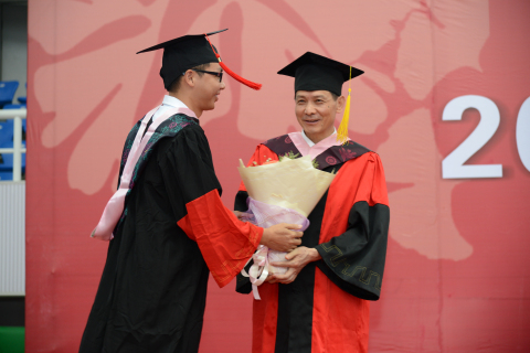 在今年的毕业典礼上,学校新增了感恩献花环节,毕业生代表分别向老师代表和家长代表们献花,表达感恩之情。