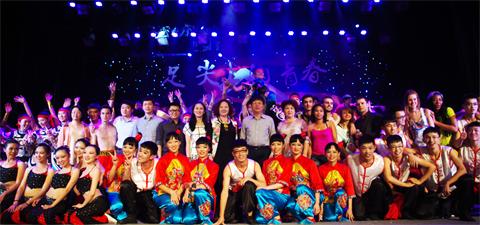 比赛开始前,南湖会堂人潮涌动,人声嘈杂。突然整个灯光暗下来,现场立刻安静,接着4个主持人亮相舞台中央,其中黄头发白皮肤的主持人鲍比显得格外亮眼,他用一口流利的中文念主持稿,台下有的观众都惊讶地张开了嘴,同时赞叹他的中文水平。随着主持人的亮相,本场晚会也正式拉开帷幕。 第一个舞蹈节目是统数学院的《封箱》,舞蹈动作包括了京剧里最基本的圆场步、兰花指、兰花掌,还有一些平转、蹭转以及托举等有难度的动作,舞蹈充分展现了中华民族的古风古韵。接着是文澜学院的土家族风情歌舞《山乡春来早》和中韩学院的中国古典舞作品《颂春》。 来自国际教育学院的《we’re all in this together》是第四个节目,活泼的音乐和动感的舞步使全场观众的脚都跟着不自觉地抖动。来自信息与安全工程学院的舞蹈《羚羊的外套》结合了芭蕾舞歩生动别致地展现了羚羊群和谐的生存状况,又以盗猎破坏羚羊生存深化了舞蹈的现实意义,强化了舞蹈的环保主题。演员们身穿羚羊外套式的服装,眼里饱含着泪水,观众席不时发出“好感人”、“要哭了”的话语。