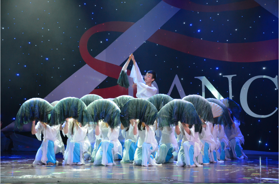 第六个节目是来自会计学院,衣袂飘飘、舞墨飘香,包含中国元素的《玄墨》让观众们称赞不已。接着是金融学院的《戏梦人生》,演员们身着飘飘青衣,舞蹈展现了老艺术家对艺术的传承和人才的培养。哲学院的节目《毕业照》则表现了一群热血青年怀揣着理想,踏上远航的征程的理想。公管学院的节目《乒搏》将运动融入舞蹈,回忆了中国乒乓球的发展历程。经济学院的舞蹈《女儿花》将热情奔放的傣族舞蹈融入了时尚流行的现代元素,给观众们带来了一场视觉盛宴。
