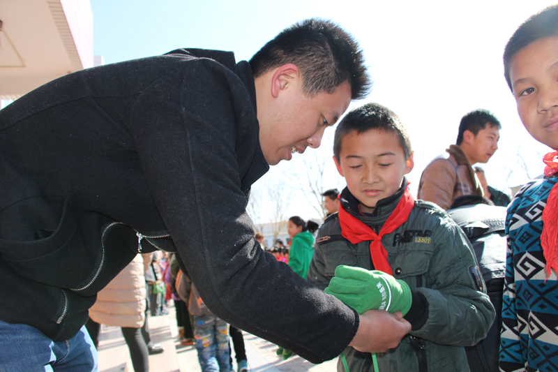当日上午10点30分,支教团一行8人抵达航天小学。发放仪式正式开始,由支教团团长李帅代表支教团全体鼓励孩子们学习雷锋精神,希望他们在今后的日子里,“从身边小事做起,诚实友善,公平正义,关心他人,帮助他人,用一颗感恩之心,做一些利人之事”。随后,支教团成员亲自为每名孩子带上手套,并发放体育用品,鼓励孩子们好好学习。带上新手套,拿着全新的体育用品,孩子们自发地欢呼起来,冻得通红的小脸上也露出了天真的笑容。