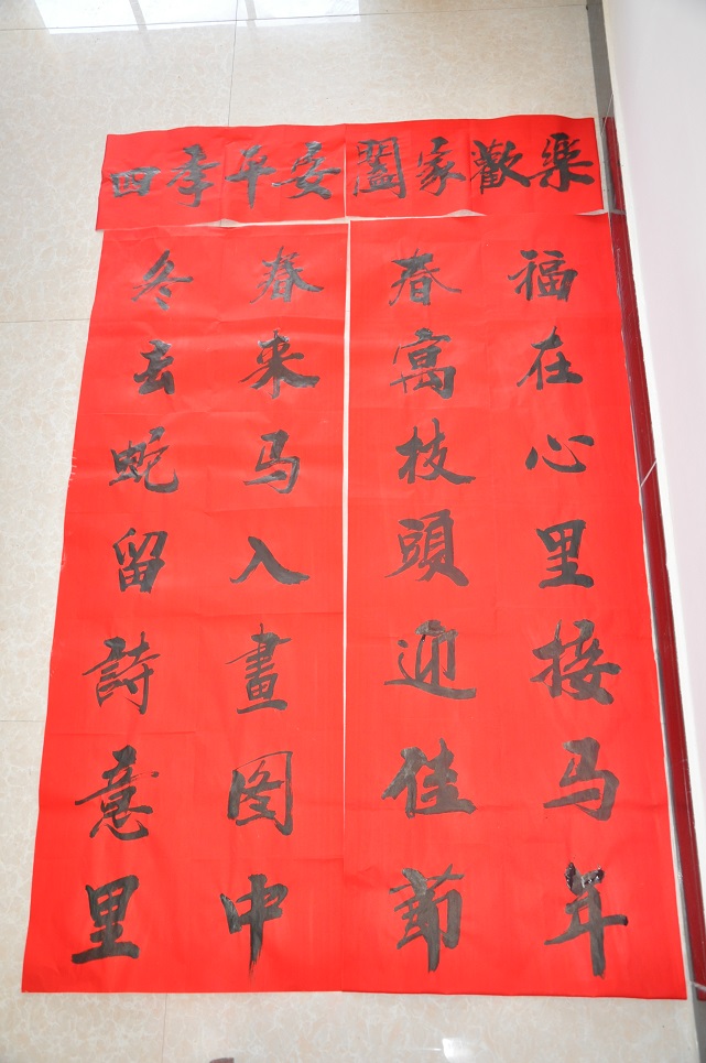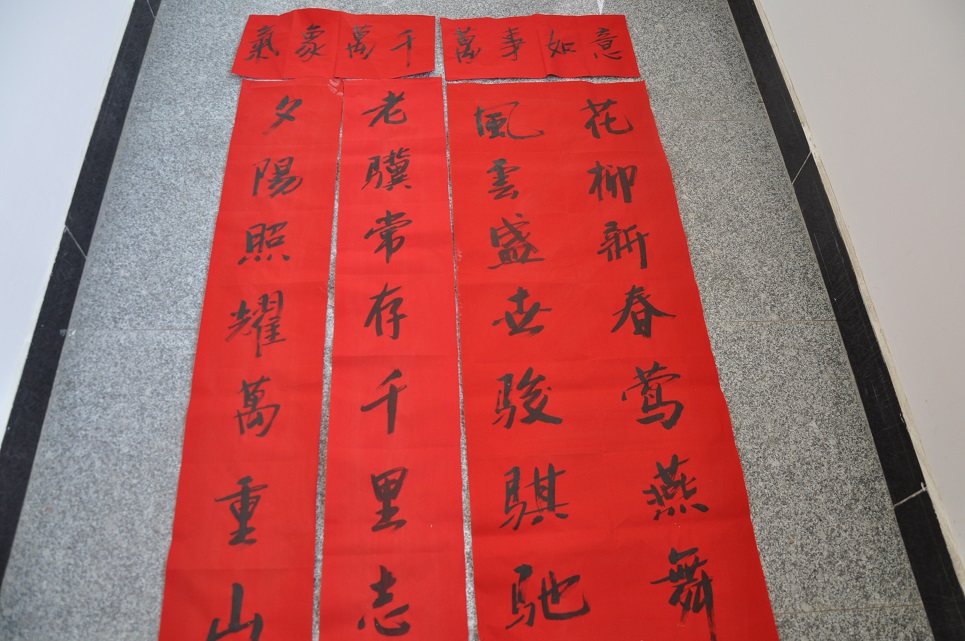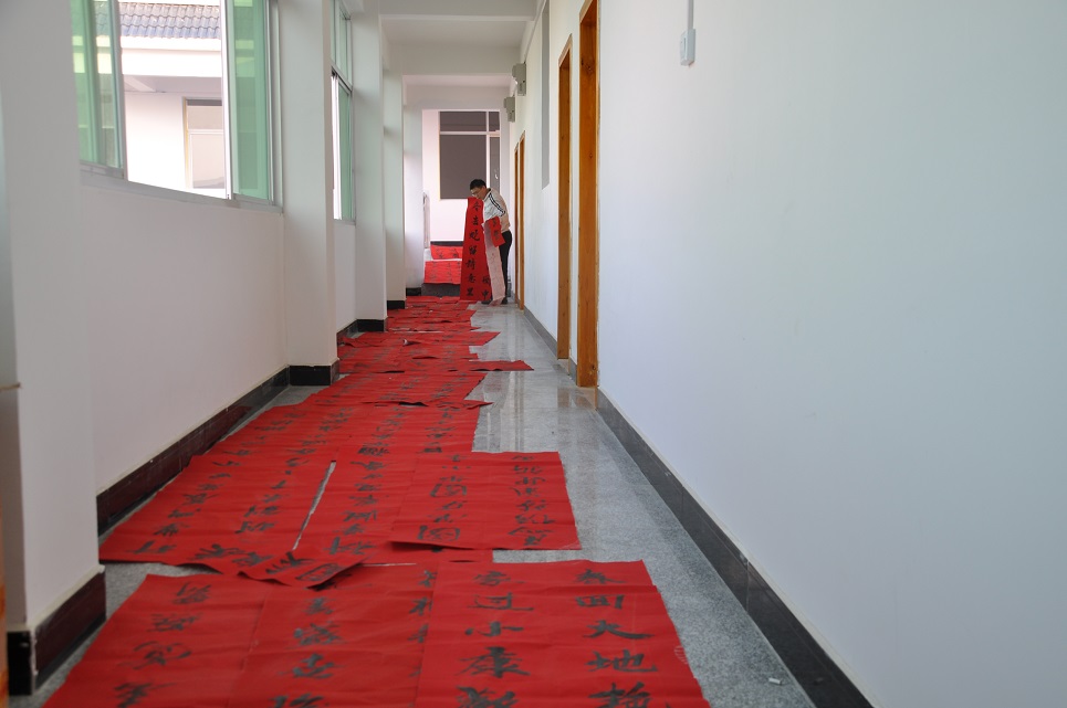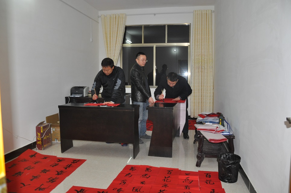 新闻网讯(通讯员 单万)为深入贯彻落实省委关于“万名干部进万村惠万民”活动的文件精神,我校“三万”活动工作组紧紧围绕宣传政策、增进感情、兴办实事、服务群众等中心工作,采取切实措施,为群众办实事。组长高碧峰召集大家开会,想办法,办实事,把党和政府的关怀送到群众中去。在组长高碧峰带领下,工作组全员动手,挥毫泼墨,从1月17日开始,昼夜加班加点赶写春联,共书写春联200多副。工作组拟在近日在走进农家、体察民情、送服务、送温暖的时候,将《致村民朋友的一封信》、《问卷调查》和春联送到驻点村民手中,增进与广大村民群众的感情,为广大村民群众送去贴心服务。