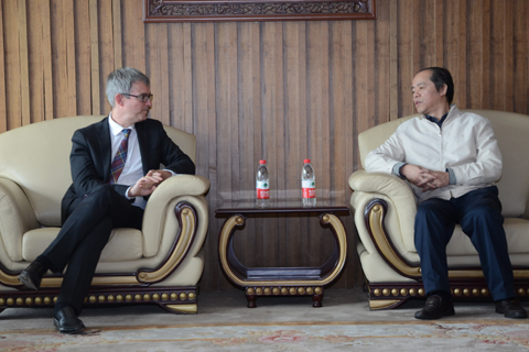 开幕式前,张中华书记在六楼会议室亲切会见了马天宁一行。双方互赠了礼物并合影留念。周景明副书记、刘茂林副校长、国际交流部副部长任翛、哲学院党委书记祝振炎等陪同会见。