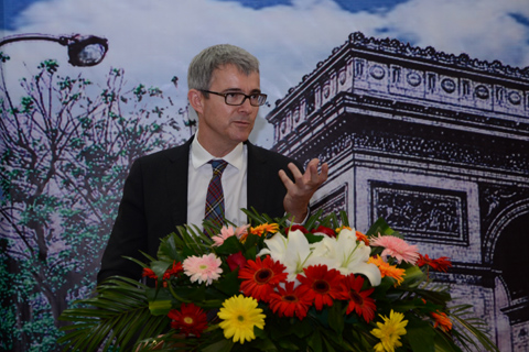 新闻网讯(学生记者 李倩彤 刘君宇 学生通讯员 董晓静)值中法建交50周年之际,11月15日上午,由我校哲学院、校团委主办的第八届“人文风•世界行”之“走近法国”开幕式在中原楼七楼报告厅举行。法国驻武汉总领事马天宁、高等教育合作专员马瑞克、我校党委副书记周景明、副校长刘茂林等出席大会。校学工部部长雷照荣、教务部部长刘仁山、校团委书记周巍、哲学院党委书记祝振炎、副书记向敏等参加会议。