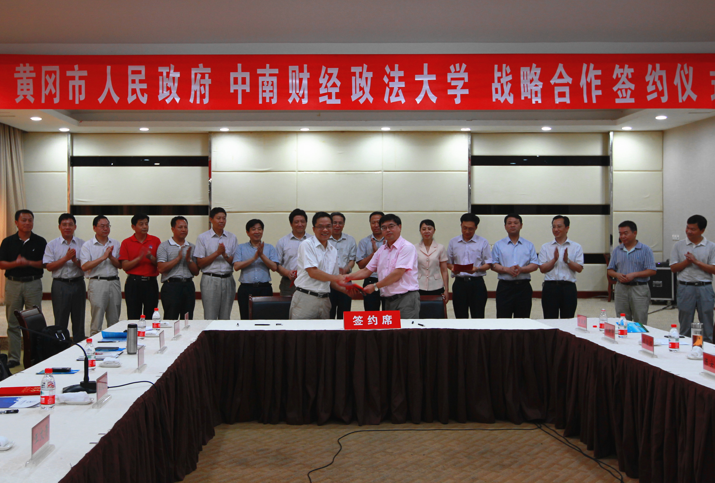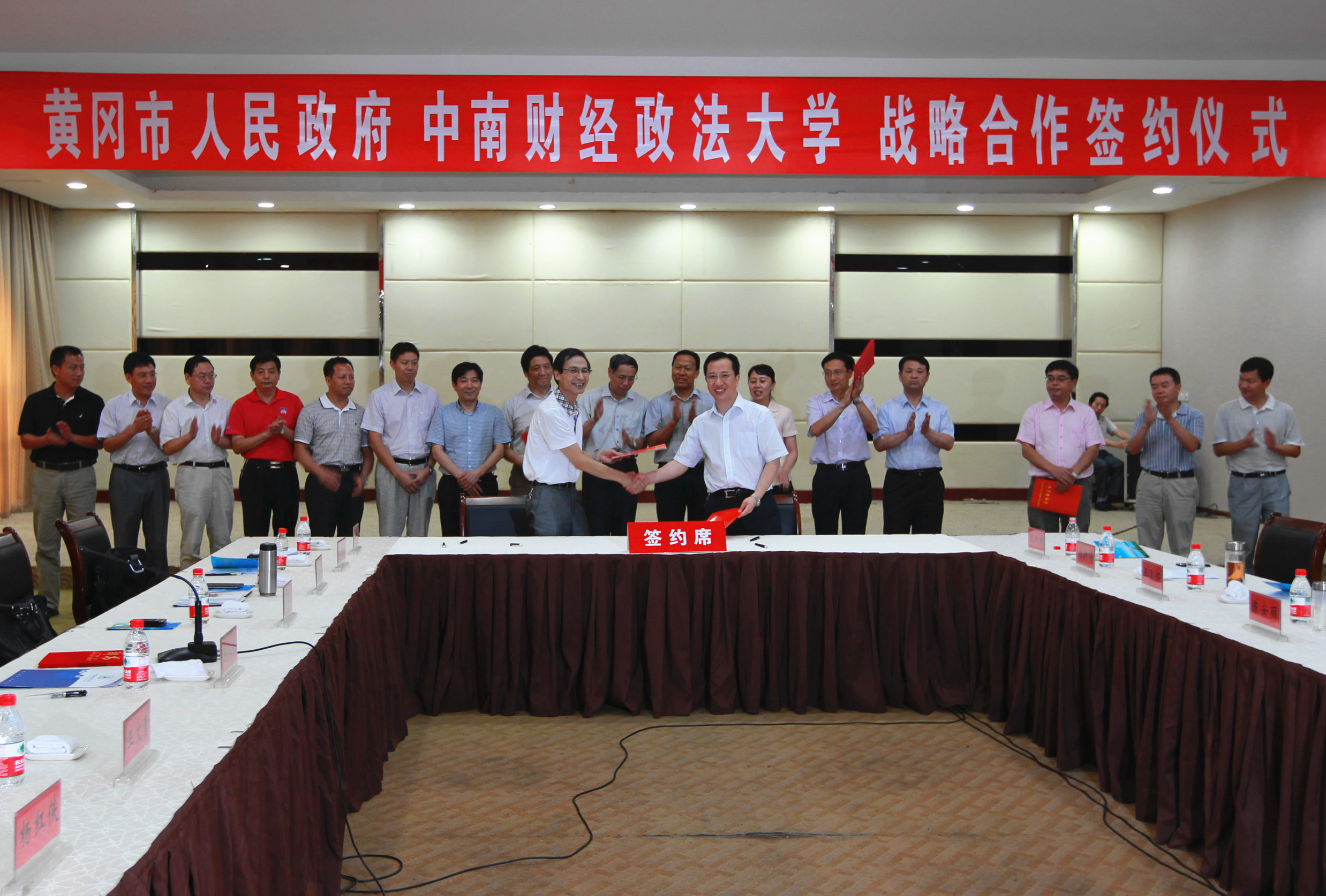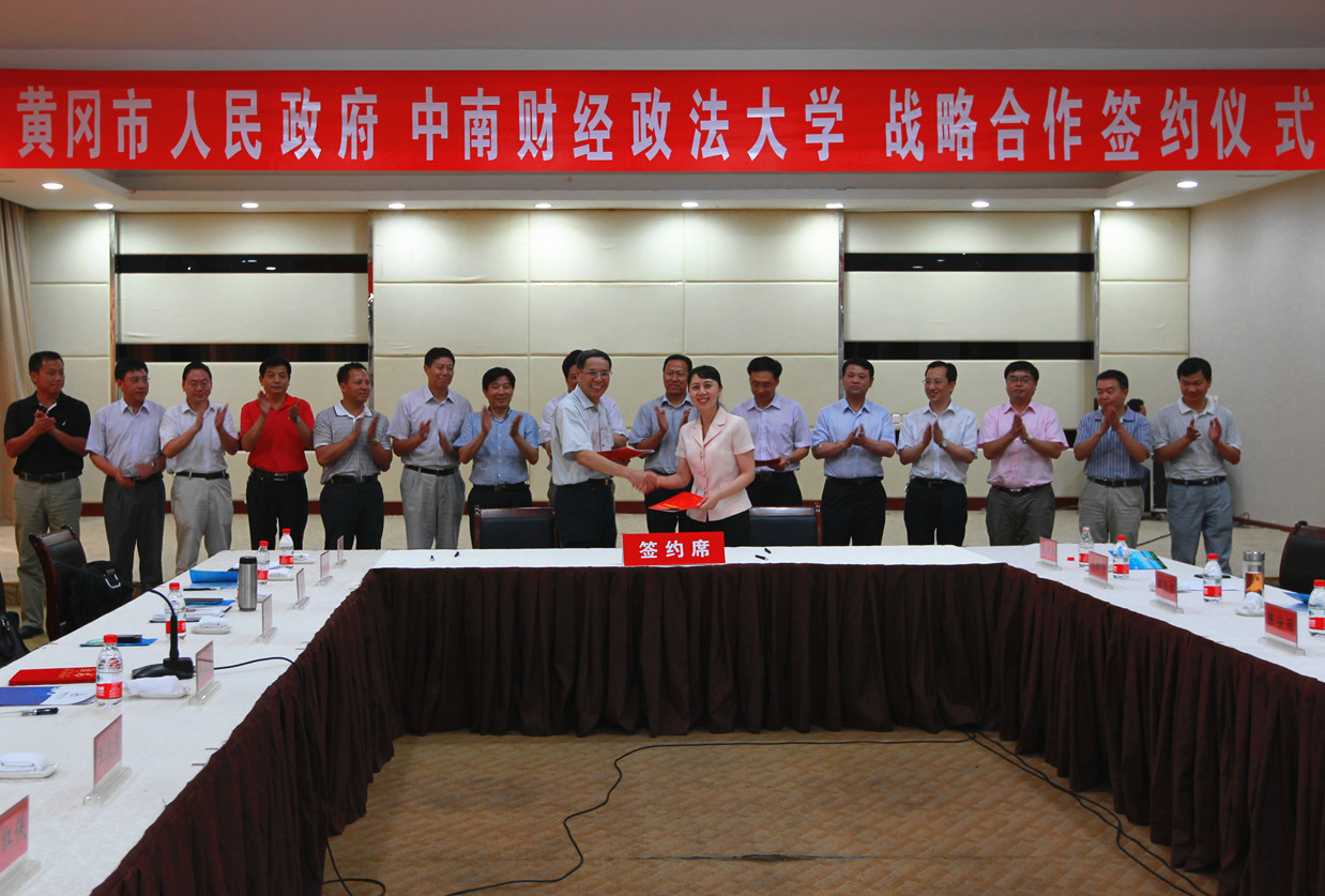 签字仪式由黄冈市委常委、常务副市长崔永辉主持。校长吴汉东、副校长刘可风、王文贵,校办、法律事务部、组织人事部、研究生工作部、发展规划部、教务部、科研部、后勤保障部、财税学院、法学院、法硕中心、法治发展与司法改革研究中心、继续教育学院等部门和学院的主要负责人出席签字仪式。黄冈市委书记刘雪荣、市长陈安丽、副市长崔永辉以及市直相关单位负责人出席会议。