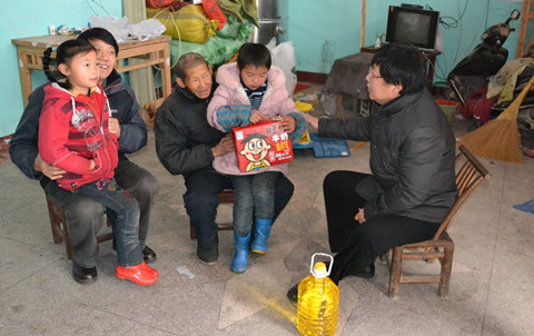 座谈会后,周景明、王文贵两位校领导还亲赴长冲村,到留守儿童家中慰问,为他们送去了牛奶、食用油等生活用品,勉励他们好好学习、克服困难、健康成长。