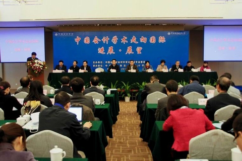 会议主题报告环节由财政部会计司副司长、中国会计学会秘书长刘光忠教授主持,杨雄胜、黄世忠以及张龙平三位教授做大会发言。杨雄胜教授发表题为《会计国际化:中国会计学界的历史担当》的主题演讲。杨教授认为,中国经济、政治、文化国际地位的提升以及世界一体化进程,为中国会计学术国际化提供了机遇,实现会计学术国际化的一个重要途径就是中国会计学者在国际期刊发表有关中国问题的论文。中国会计学会应当为中国会计发展制定目标、明确思路以及搭建平台,并充当资金保障、组织协调和整合资源的角色,采用“走出去”与“请进来”战略,把中国会计的亮点系统推介给世界同行,引进国际先进或探索性的制度、做法,并组织若干学术联盟,提供必要的资源支持,打造中国会计学术品牌。黄世忠教授发表题为《会计学术研究如何为会计准则国际化服务》的主题演讲。他指出,为提高IFRS的质量,IASB强调以证据为基础(Evidence based)的准则制定模式,并尽力避免异想天开式的研究。证据为基础的准则制定模式需要学术研究的支持,黄教授认为,学术界在概念框架修订的核心问题、准则影响分析、公允价值会计、会计职能的转变—从会计到预计、披露框架以及业务模式与计量属性的选择等多个重要领域大有作为。委员会副主任委员会计学院张龙平教授发表题为《学术研究如何服务于国际化会计人才培养》的主题演讲。张教授首先回顾了全国会计领军学术后备人才培养计划以及中国大陆高校会计学者顶级期刊发表方面所取得的优秀成就。在总结成功经验的基础上,张教授提出了实现学术人才国际化的可能路径。他认为我们应采取“请进来,派出去”战略,要研究国际主流的研究范式,高层次学术人才的培养模式必须与国际接轨,应鼓励研究团队的形成,建立英文学术期刊的评价机制。张教授同时强调中国会计学术国际化要有我们自己的文化面目,要正确认识我们学术论文国际化学术发表对中国会计财务的理论与实践发展有何贡献,对美国、对世界又有何贡献。