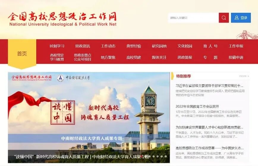 2021年12月,全国高校思政网首页推出“‘读懂中国’新时代高校铸魂育人质量工程”育人成果专栏,全面展示学校思政工作品牌及典型经验。