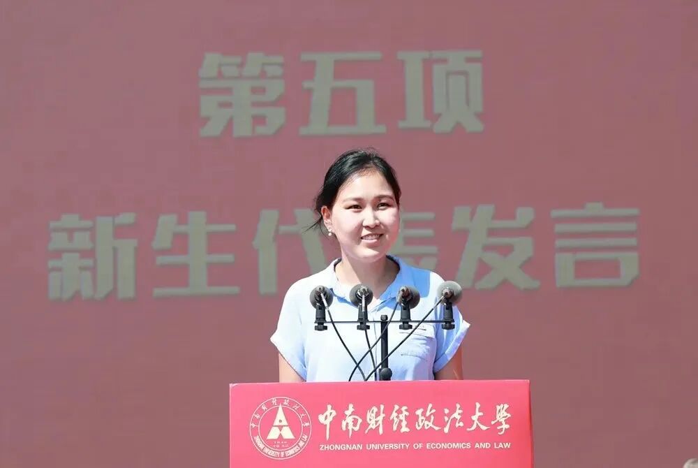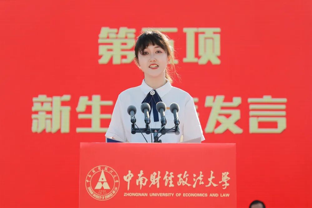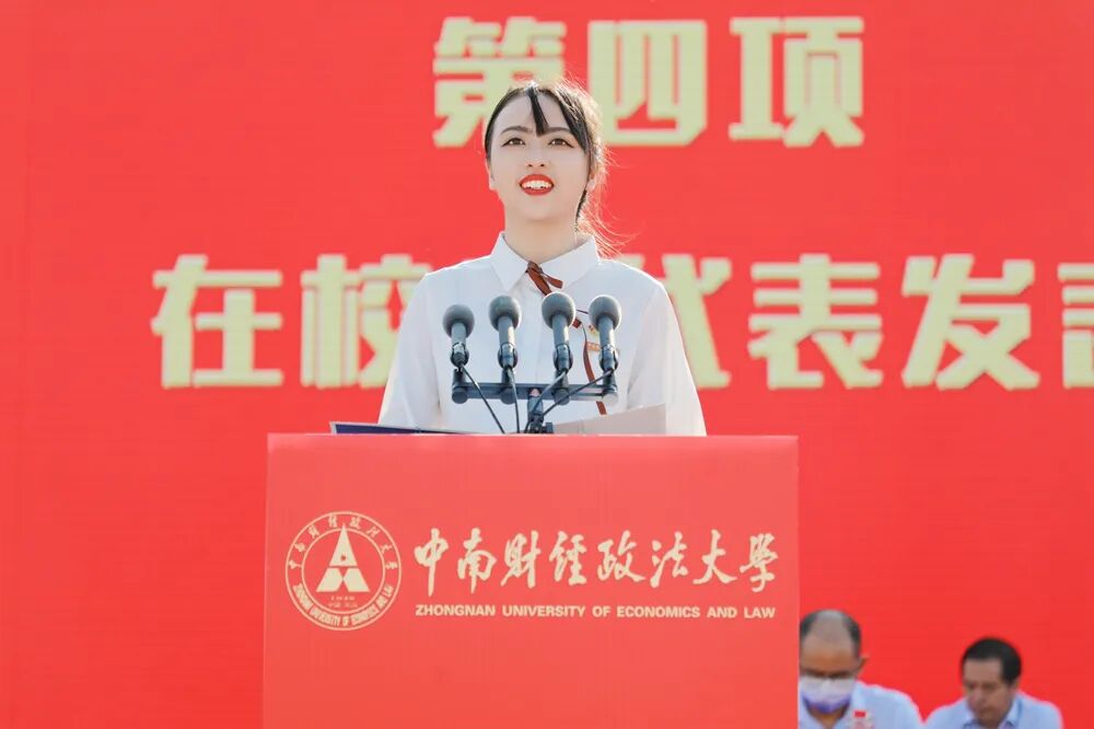 法学院2021级诉讼法学专业硕士研究生温晖蕾和金融学院2020级本科生张栩源作为在校生代表在开学典礼上发言。