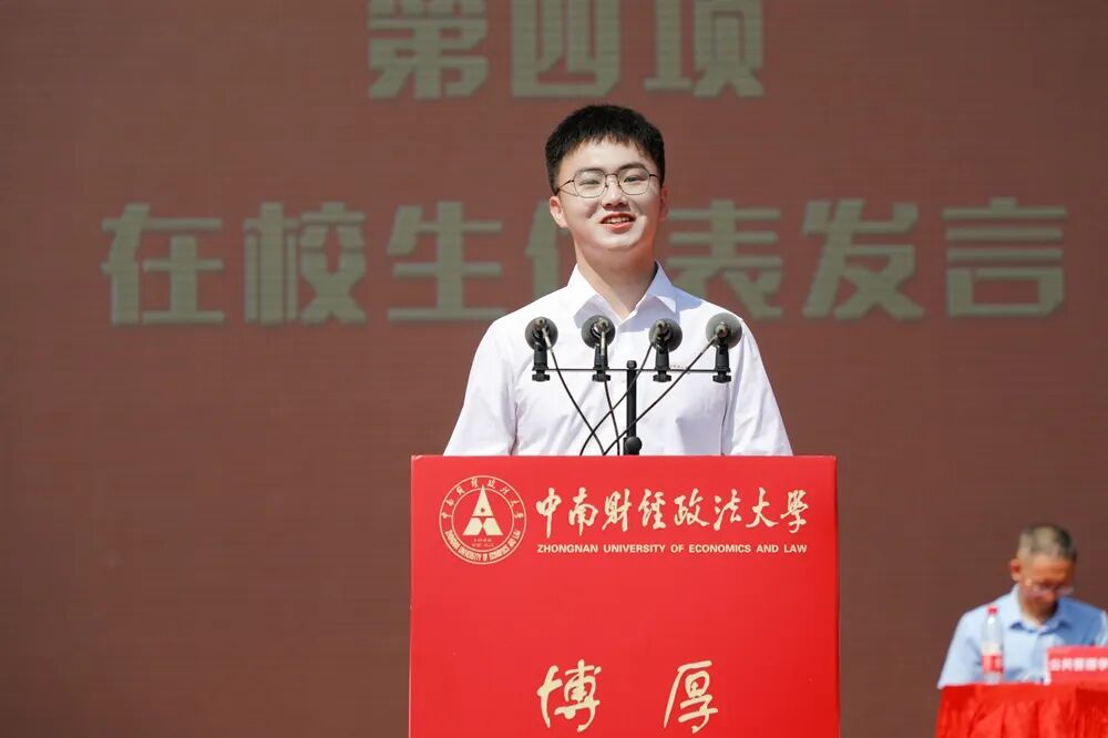温晖蕾说,作为一名法科学子,从本科到研究生的六年学习旅途中,法律已成为了她的信仰,技能和良知并重的专业素养已深深刻入到脑海中。在中南大学识渊博的老师们身上,在藏百书纳万卷的图书馆里,在文澜大讲堂及学术研讨会中,她汲取了治学之道,领悟了为人之理。她号召同学们,要胸怀大志、恪守初心、笃行致远、惟实励新,要牢记使命、勇于担当、不负韶华、不负时代。