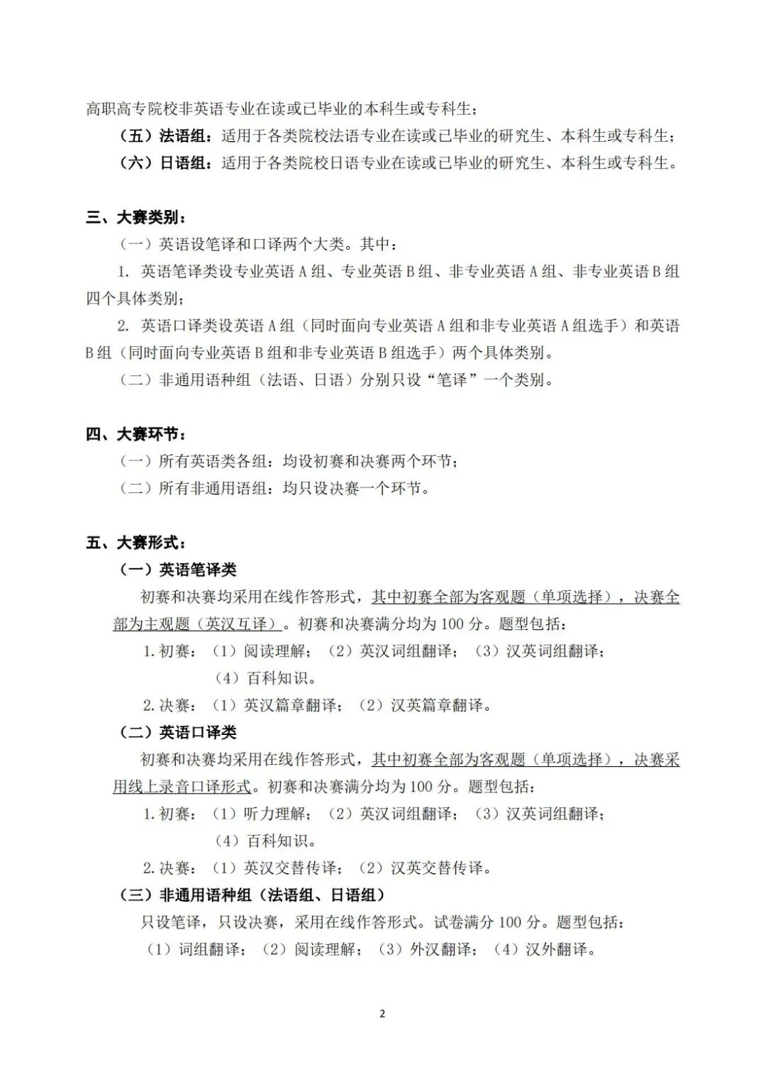 (二)非通用语种组(法语、日语)分别只设“笔译”一个类别。