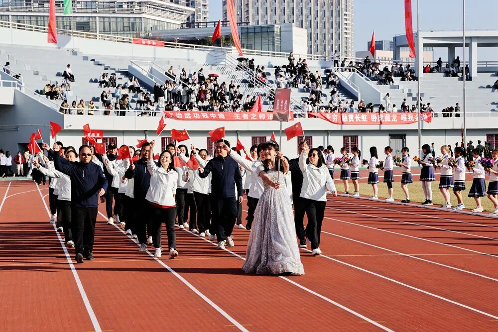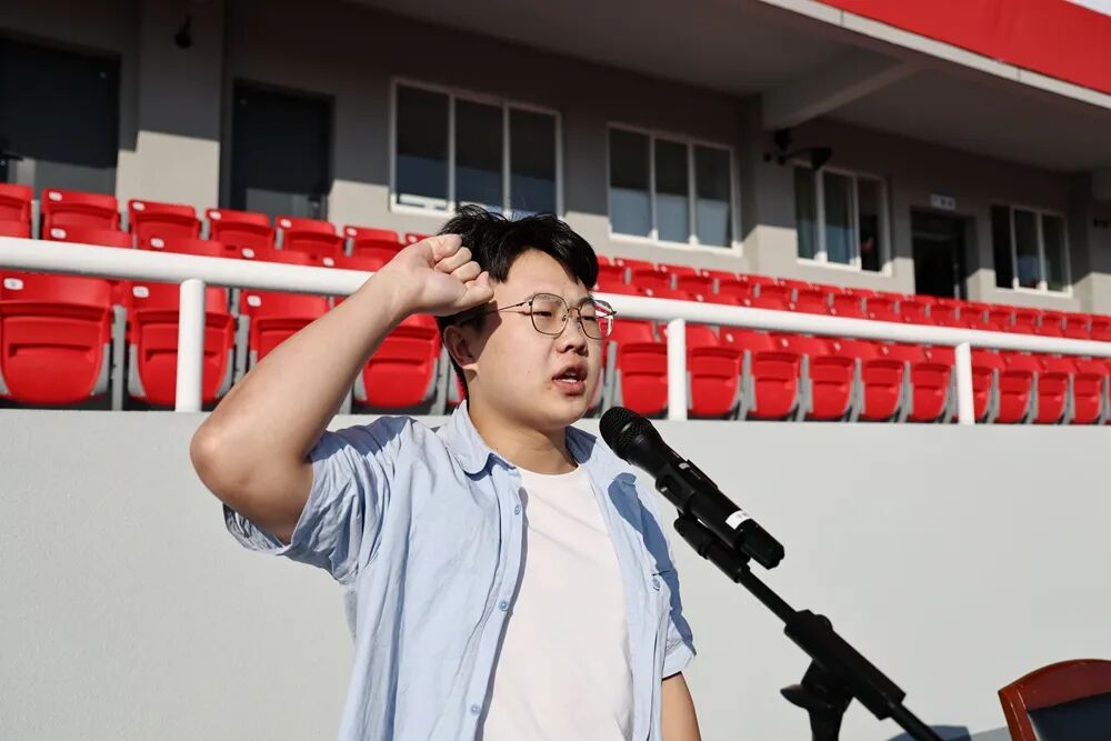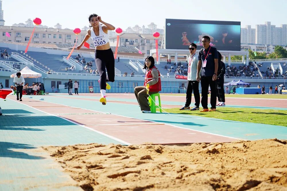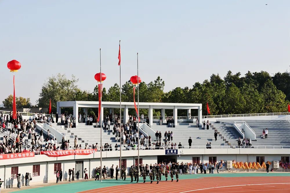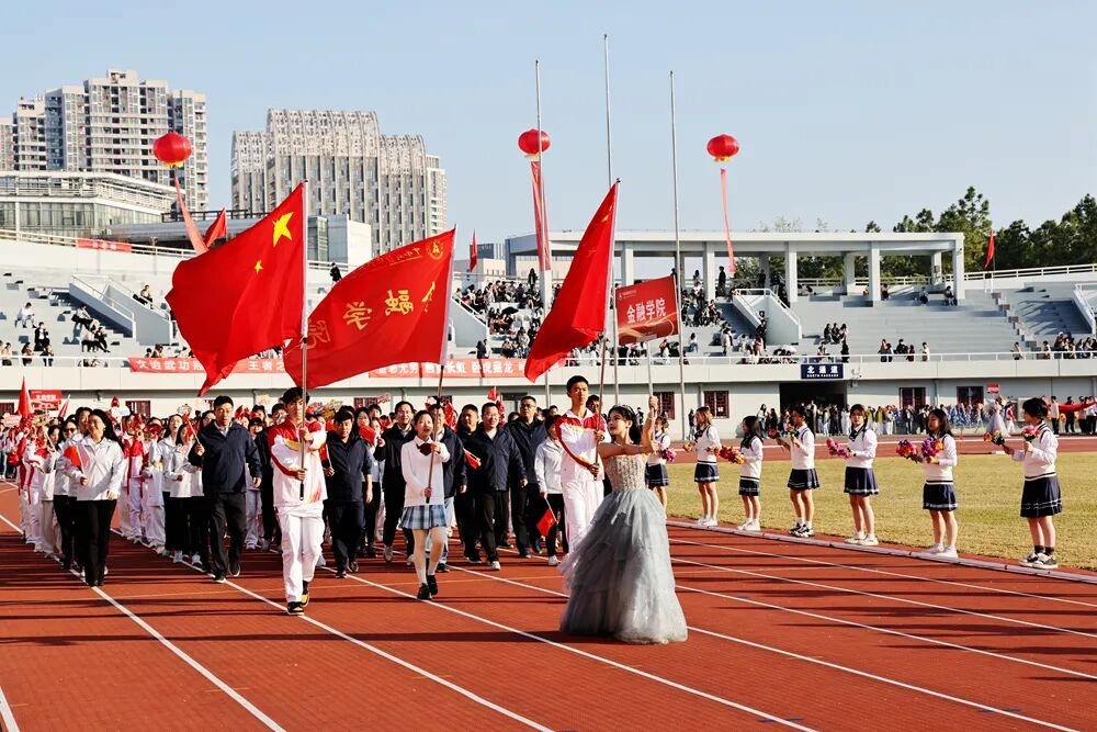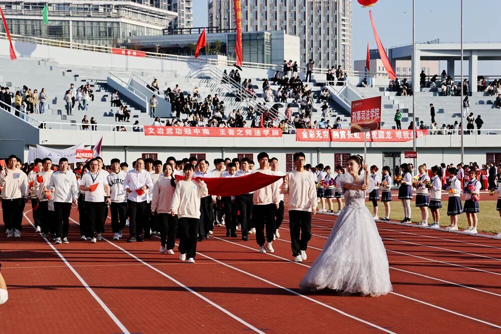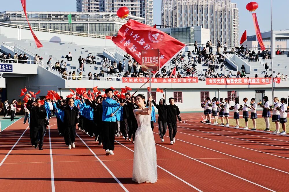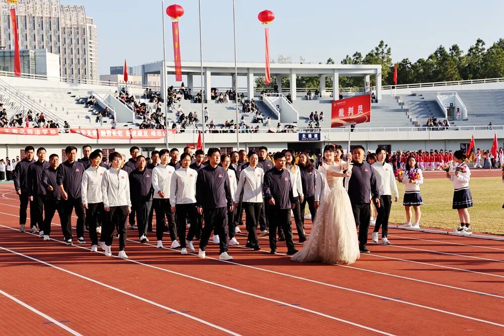 连续三年获得中国大学生武术散打锦标赛冠军、信息工程学院肖同峰同学和杭州亚运会裁判员、2024年学校运动会赛事总管李晶琳老师分别代表运动员、裁判员进行宣誓。