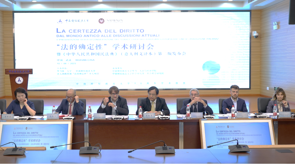 ▲“法的确定性”学术研讨会暨《中华人民共和国民法典》(意大利文译本)第二版发布会举行。本次研讨会由中南财经政法大学、意大利罗马第一大学、意大利教育部“法的确定性”重大项目联合主办