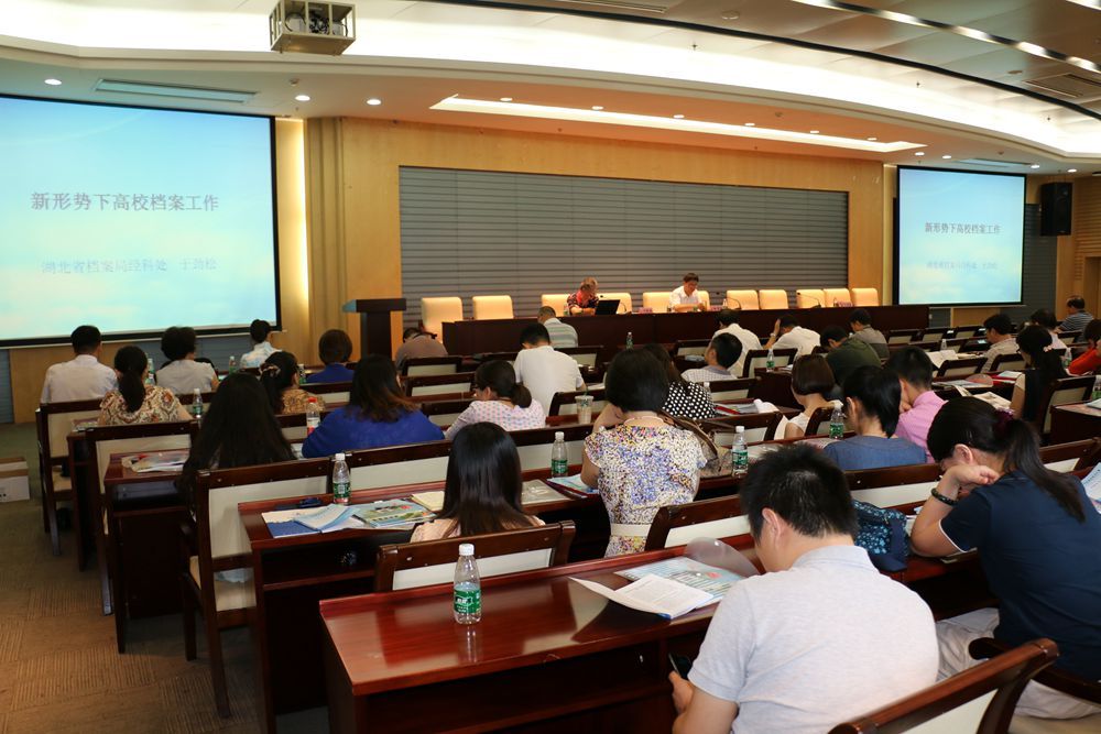 湖北省档案局经科处副处长于劲松作“新形势下的高校档案工作”讲座