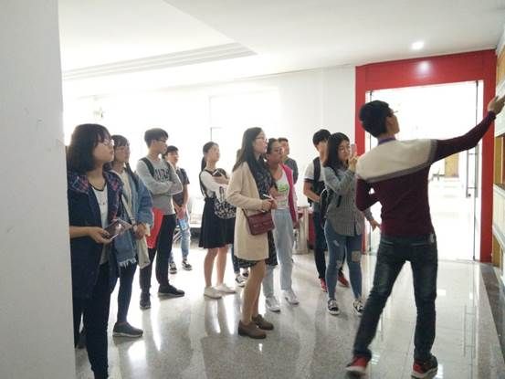 2018年4月1日,我校资助管理中心的带队老师及校勤工助学服务中心成员来我馆参观学习,志愿讲解员尹帅负责讲解。