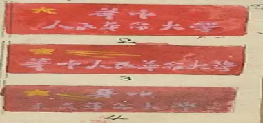 学校归档最早的校旗设计仍然是以“华中人民革命大学”为基础对象的。一共有三种方案。