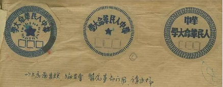 所存档的“校徽”是面向全校征稿的,主要以“华中人民革命大学”校名量身设计,选择存档的有15套之多;有个人设计的,有集体设计的;有的一套设计就有4、5个方案。