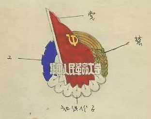 2、设计中大多都有“五角星”(15套中只有3套不是);大部分结合有“工、农”元素,只是有的是镰刀、斧头,有的是麦穗、齿轮,有的则两者结合使用(15套中只2套没有);还有的有“工”、“农”、“学”三元素(15套中5套是这样设计的,如图一、六、七就是);有的设计有“华中地图”(如图八);有的还设计进了“毛主席”头像,如图一;