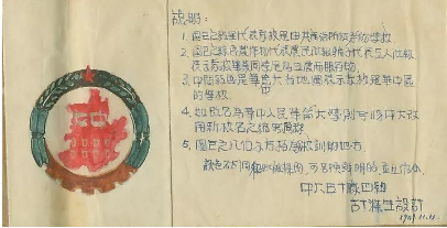 从所存档的15套设计征稿原图来看,15套中有14套都是以“华中人民革命大学”校名来设计的,有一套则是以“中原大学”校名之简称“中大”来设计的,但也有“华中”元素,见图八。