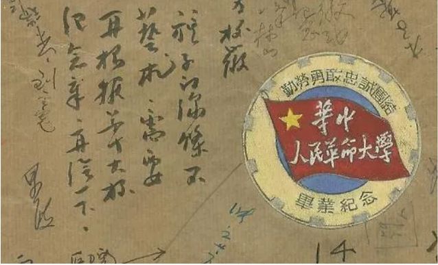2、我校历史上曾经有过校训与校徽、校旗设计,且“华中人民革命大学”这套是最早的;