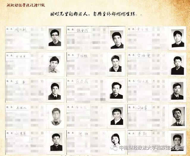 政治77级是1977年恢复高考后,学校招收的政治专业“第一班”,当时正值我校前身湖北财经学院时期,它的设立是专门为高校培养马克思主义理论课师资。