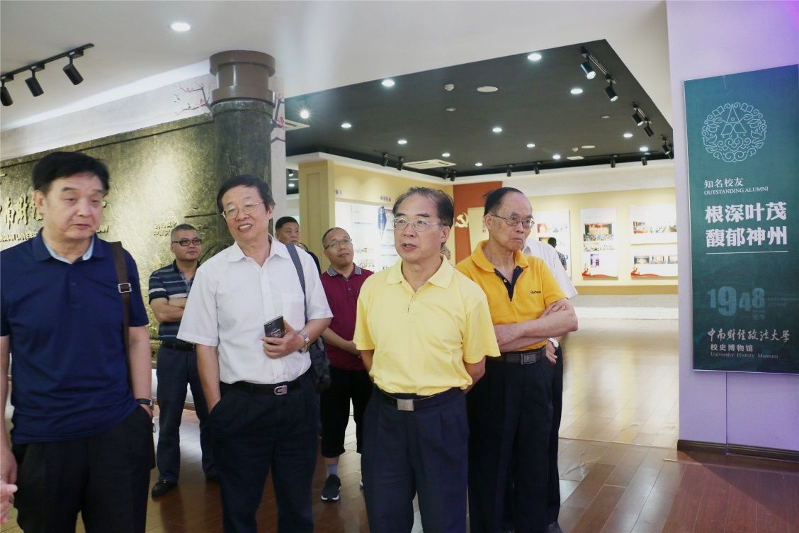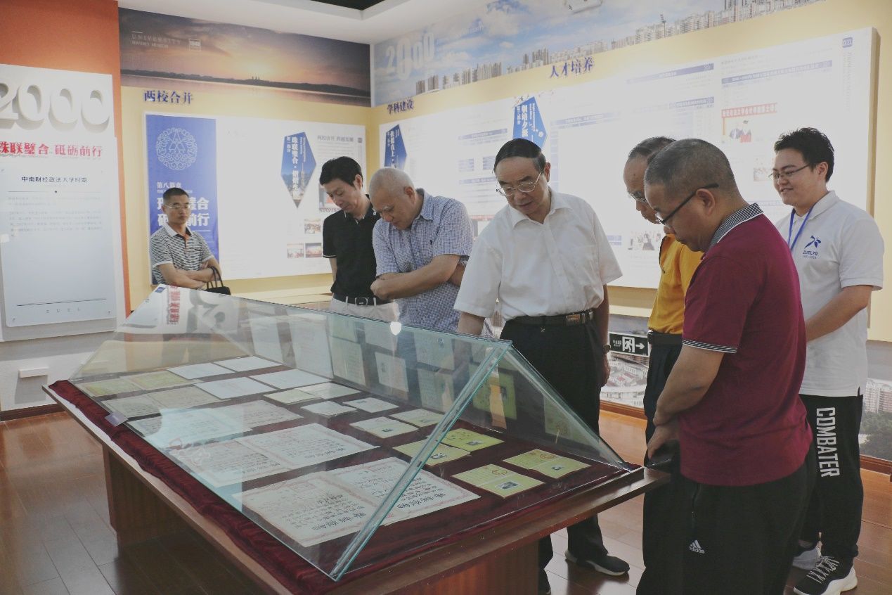 嘉宾们驻足欣赏了各个历史阶段的实物资料、图片展板,特别是有关我校法学发展的资料,如中国法学第一班、重建中南政法学院等,充分感受到了中南大法学的巨大成就。据悉,本次嘉宾到访我校,主要是为了学习借鉴我校办学经验,交流华南地区法学教育发展现状。