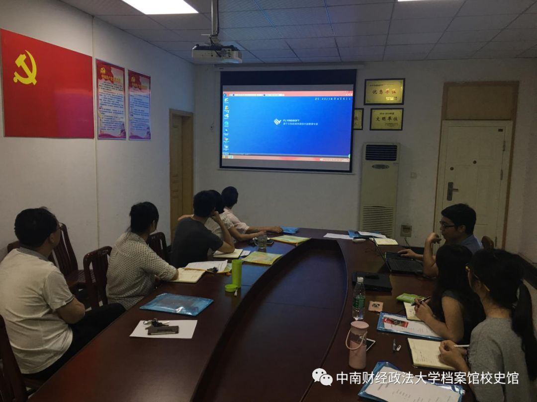 此前,为筹备此次全校部门档案员培训会,档案馆在馆内组织开展了多次新系统业务讨论会,以优化系统使用流程,提高系统使用效率。2018年6月29日下午,档案馆开展了第一次新系统业务讨论会,全馆工作人员参加了本次会议。新系统开发商代表雷经理向大家介绍了新系统概况和主要的业务模块,系统地演示了档案收集、整理、归档、移交、统计、编研、鉴定、销毁、查阅、借阅、库房管理等全方位的操作流程,全馆人员就系统的基本操作流程进行了学习和讨论。