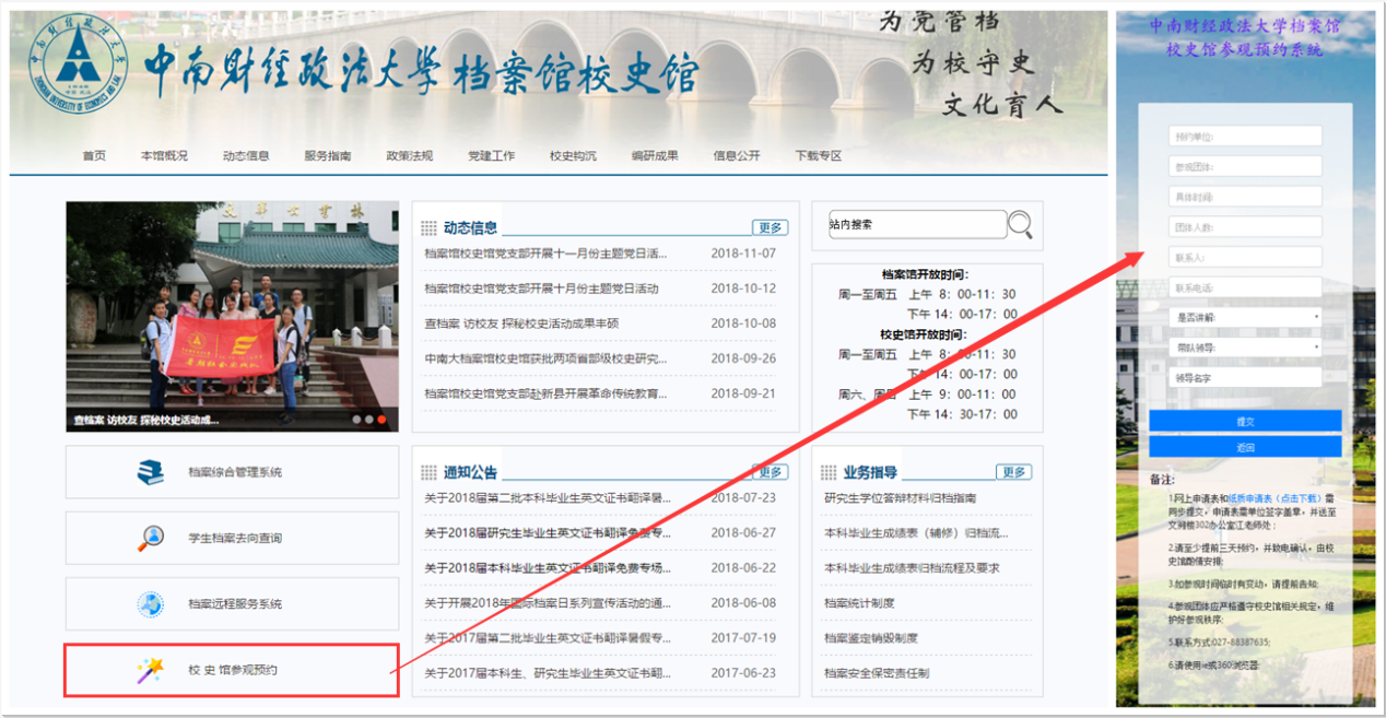 点击校史馆参观预约,就可以进入预约参观界面。按照要求把相关信息填写完成后提交申请即可。(记得致电确认哦)