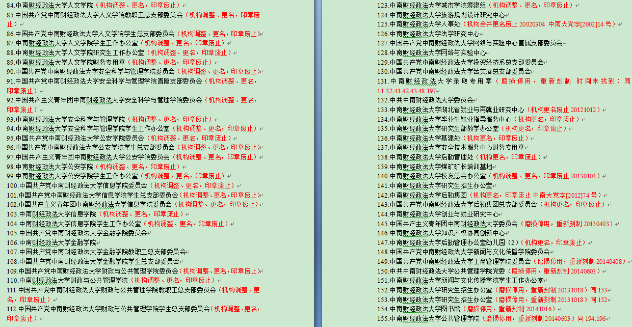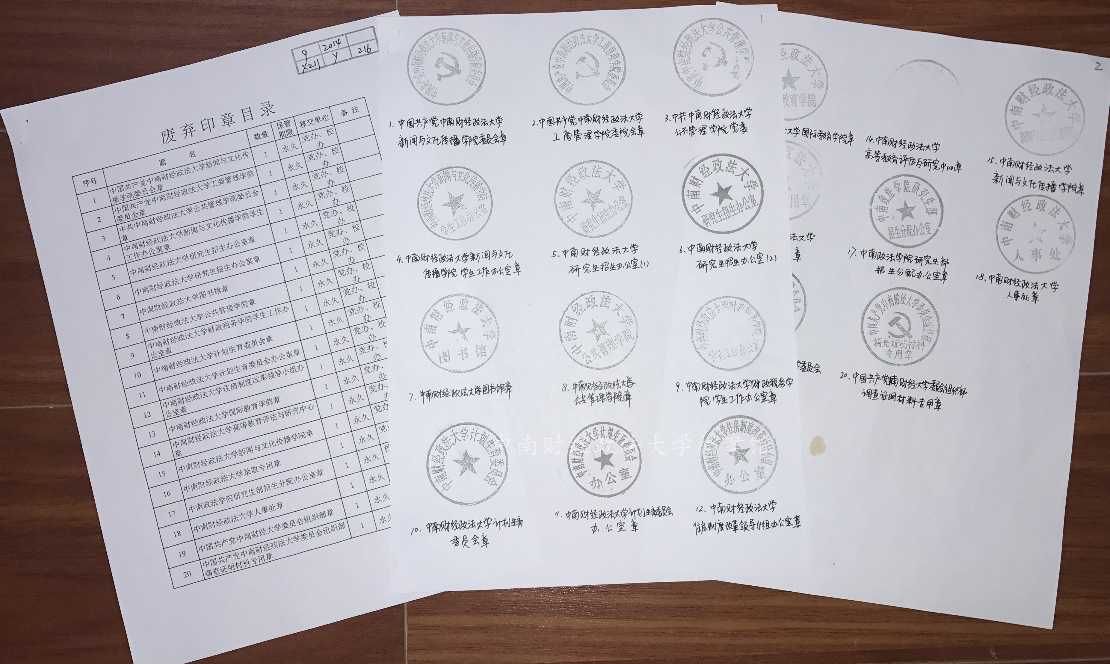 3、查看特征,确定部分印章由于损坏等原因不需补充发文,应择选出单独临时存放,准备后续按规定销毁,如中南财经大学XX管理处(损坏)。