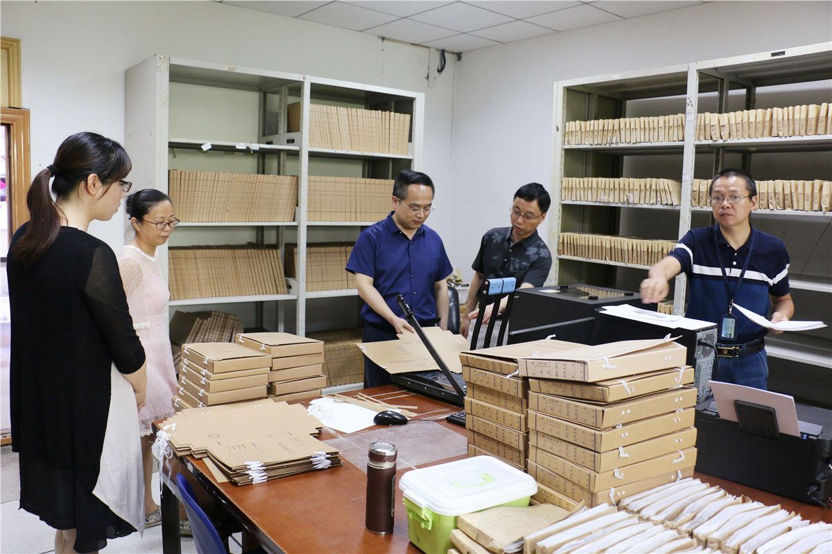 评审组认真听取了档案馆校史馆馆长徐警武有关学校档案工作目标管理省特级建设及档案行政执法工作汇报,详细查看档案收集整理、库房管理、档案信息化、编研利用等日常工作台账,实地了解查询利用室、档案整理室、电子阅档室、监控室、档案库房等馆舍功能布局和设施设备情况,抽查了行政、科研、基建、设备、声像、实物等类别档案,并现场观看了新档案综合管理系统OA原生电子文件在线归档演示。专家们严格细致地对照“省特级”建设和档案行政执法有关标准,逐项考评学校达标创建情况,对档案组织管理、业务建设、信息化、开发利用等工作提出了针对性的指导意见和建议。周恒和杨微洁分别代表评审组,反馈了省特级考评和行政执法检查的相关意见。