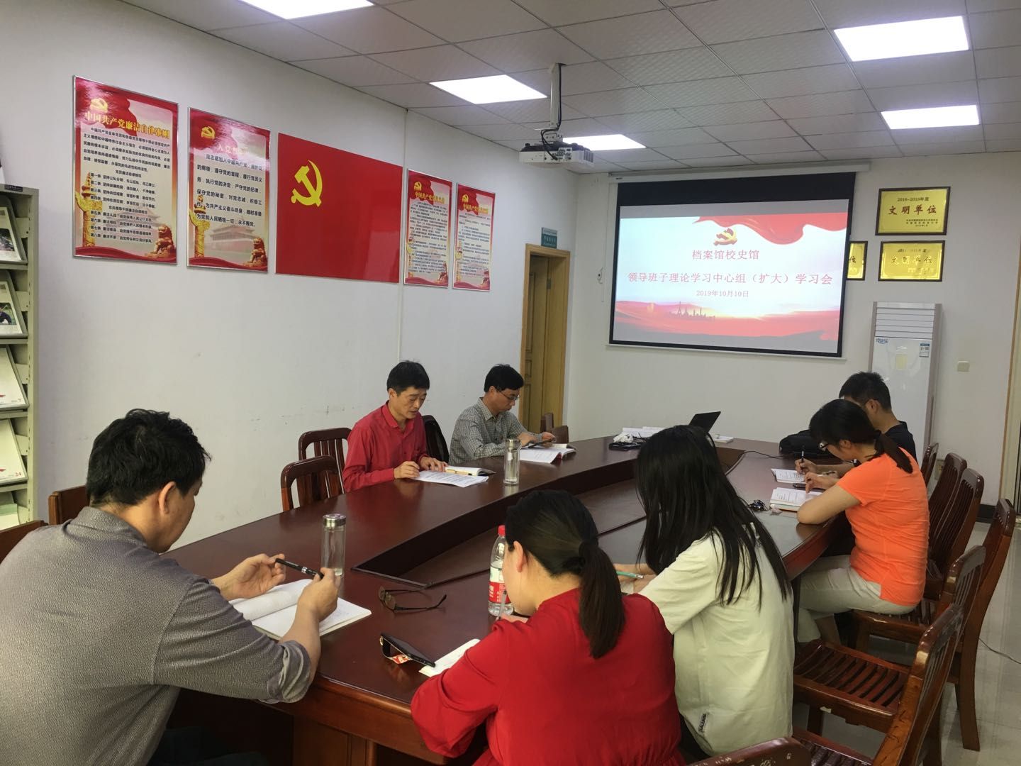 (通讯员:高斯 吴瑾)10月10日下午,档案馆校史馆党支部在文溯楼306会议室召开领导班子理论学习中心组(扩大)学习会,集中开展“不忘初心、牢记使命”主题教育学习活动。会议由支部书记王贞为主持,支部全体党员同志参加。