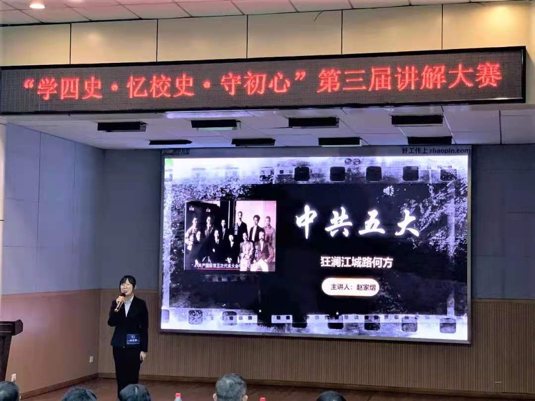 第一轮比赛中,一号选手赵家熠讲述的《狂澜江城路何方:中共五大的探索》带领我们走入了党史上那段峥嵘岁月。