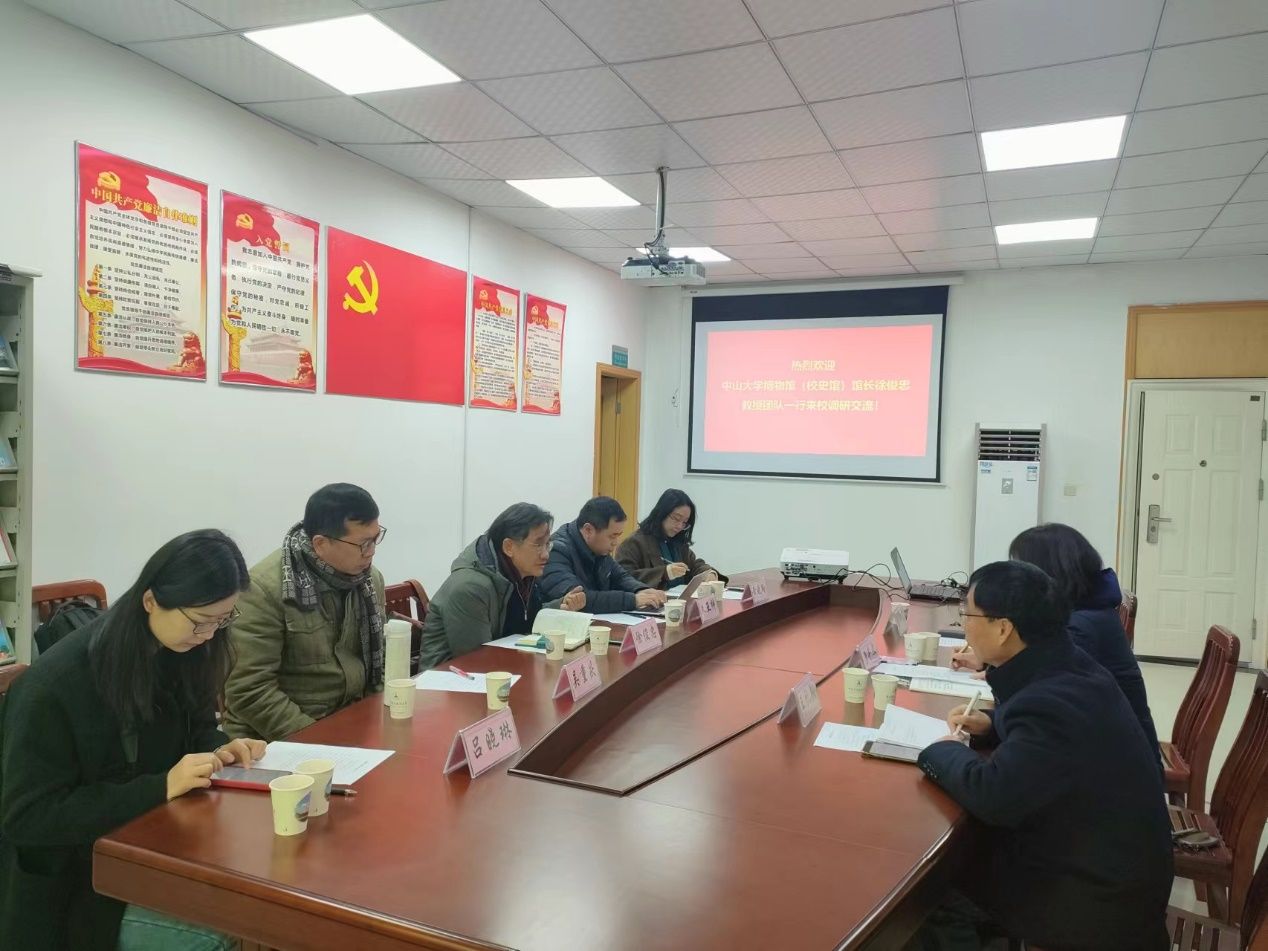 (通讯员:张兰)2024年1月26日上午,中山大学博物馆(校史馆)馆长徐俊忠教授团队一行5人到我校校史博物馆进行调研交流。我校校史馆馆长潘丰文、副馆长王礼翔对中山大学调研团队的到来表示热烈欢迎,并在文溯楼306会议室召开了座谈会。