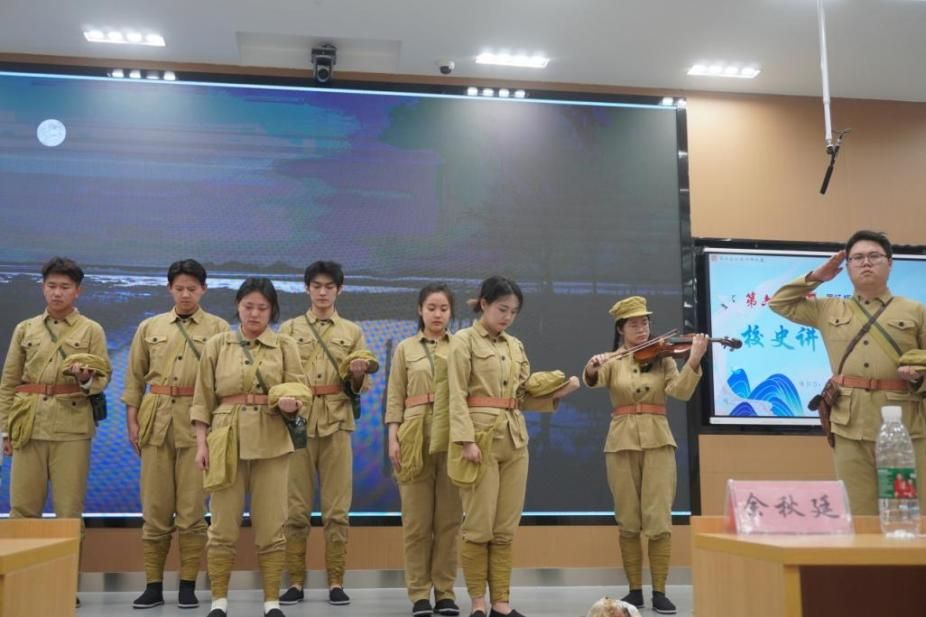 本次比赛共分为两轮,在第一轮比赛中,九名选手结合自身经历,围绕“同忆峥嵘校史,强国复兴有我”进行限时8分钟讲解。晋级决赛第二轮的选手围绕“校训”“校徽”“校歌”三大关键词进行限时3分钟即兴讲解。