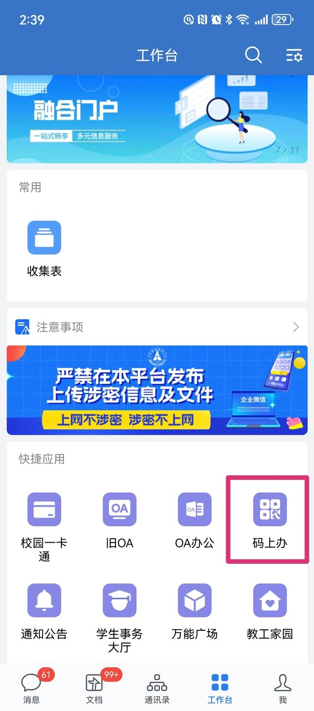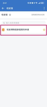 2.点击我的应用中校史馆图标。如果我的应用中没有校史馆图标,也可以在上方搜索栏中搜索校史馆。