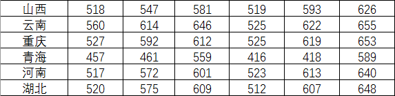 2016年在各生源省录取分数情况统计