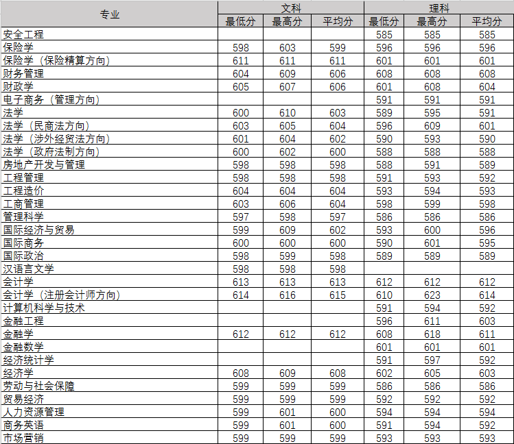 2018年分省各专业录取分数线