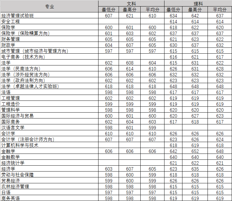 2018年分省各专业录取分数线