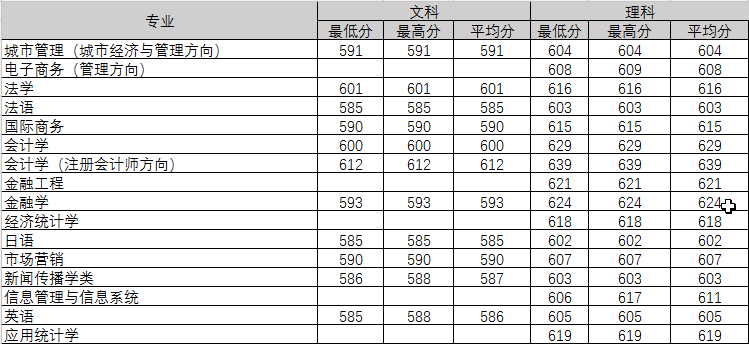 2017年分省分专业录取分数线