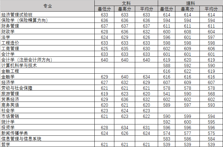 2018年分省各专业录取分数线